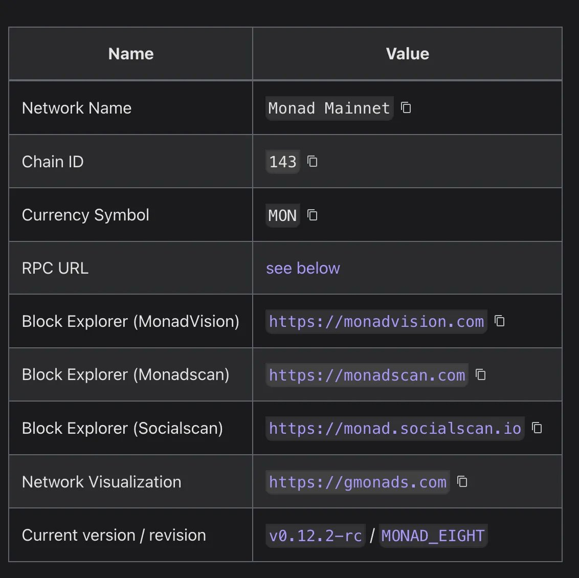 It includes the network information, addresses of protocols deployed on Monad and the various differences between Monad and Ethereum that you should consider when migrating your app!