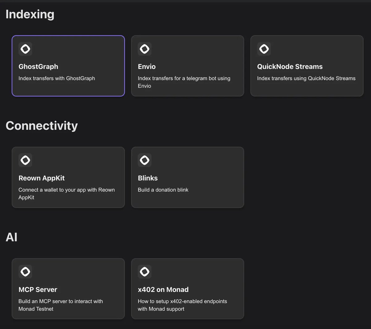 If you are someone who is new to the web3 space or looking for app development guides, Monad docs has an excellent section full of guides for developers looking to get started building on Monad.