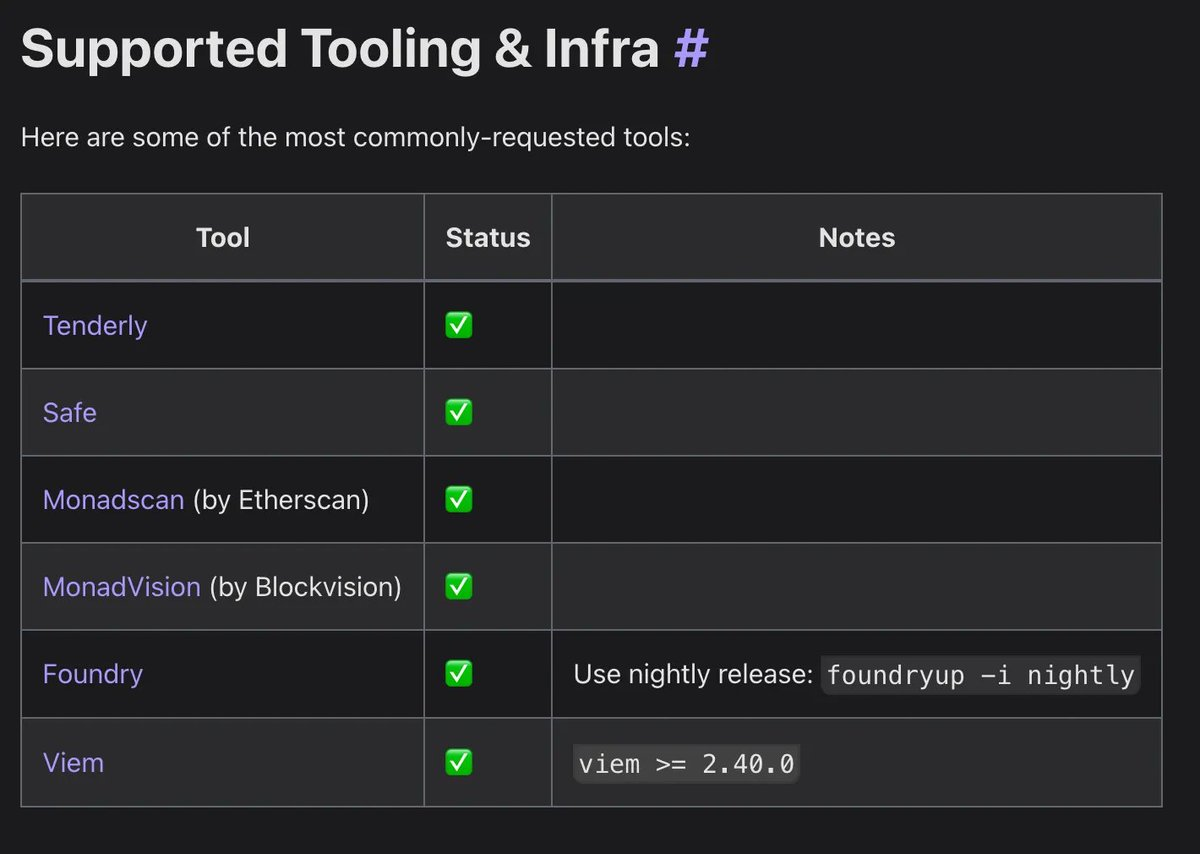 Monad has by far the largest tooling and infrastructure ecosystem on Mainnet!