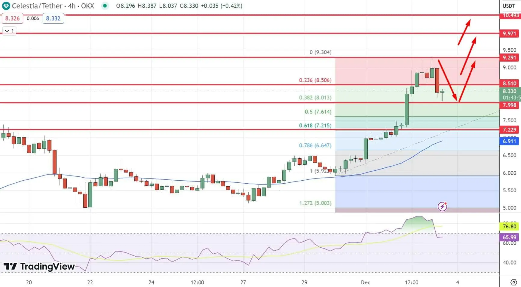 As the crypto community buzzes with anticipation, the Celestia token (TIA) nudges the $10 mark, currently trading at $8.31 amidst a bustling 24-hour trading volume of $387,150,841.