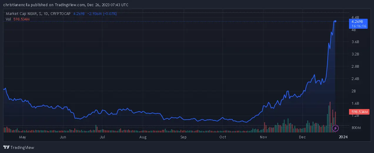 NEAR’s success is not a solitary achievement; it is a result of a thriving community. The trading volume has surged impressively by 170% over the past week, reaching over $410 million on December 25th alone.