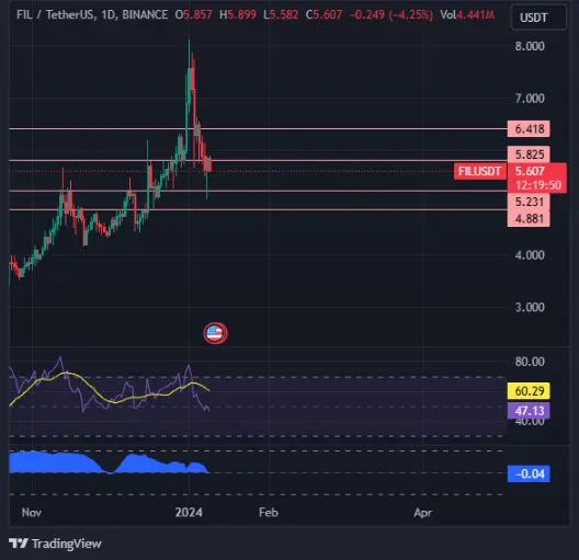 As of writing, the token is completely in the red after an impressive year-end rally. The bulls are now fighting over control of the $5.825 price level which will provide a better platform for higher highs in in the long term. However, this may not be the case in the next couple of days