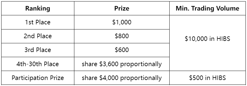 All qualified users based on trading volume can share $10,000 in HIBS.