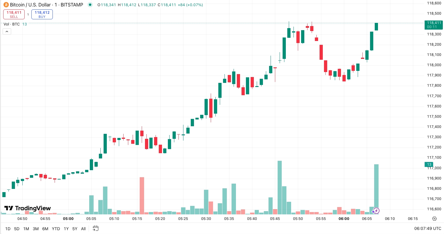 بيتكوين (BTC) اليوم (11) في جلسة الظهيرة الآسيوية يسجل قمة جديدة، حيث بلغ 118,426 دولار. لقد ارتفع بيتكوين لمدة أربعة أشهر متتالية، وهو على وشك دخول “عصر جديد”، مما يتيح المزيد من مجال الارتفاع، حيث من الناحية الفنية، تجاوز بيتكوين خط الاتجاه الحاسم الذي استمر لمدة ثمانية أعوام.