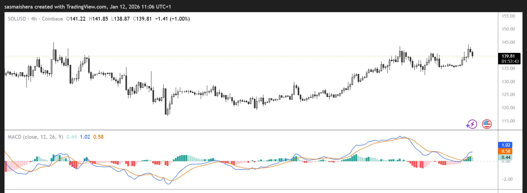 بفضل أدائها الأخير، يظهر مخطط SOL/USD لمدة 4 ساعات اتجاهًا صعوديًا وفعّالًا. تجاوزت SOL المتوسط المتحرك الأسي لمدة 50 يومًا عند $136 يوم الأحد، وتُتداول الآن عند 139 دولارًا، وقريبة من مستوى المقاومة $142 على المخطط اليومي.