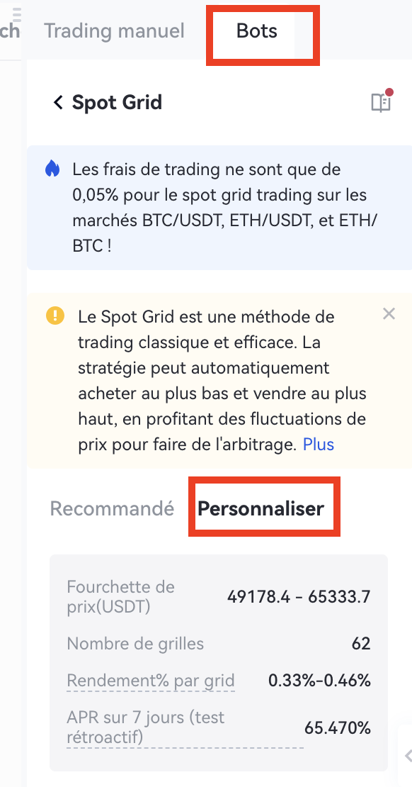 Lors de la mise en place d'une stratégie de trading grid, il est recommandé de réduire la limite de prix de la grille pour augmenter les opportunités d'achat, diversifier les risques et réduire les coûts de détention, augmentant ainsi la rentabilité globale. Avec des réglages de grille raisonnables, vous pouvez maintenir un avantage concurrentiel pendant les fluctuations du marché et obtenir plus d'opportunités d'arbitrage.