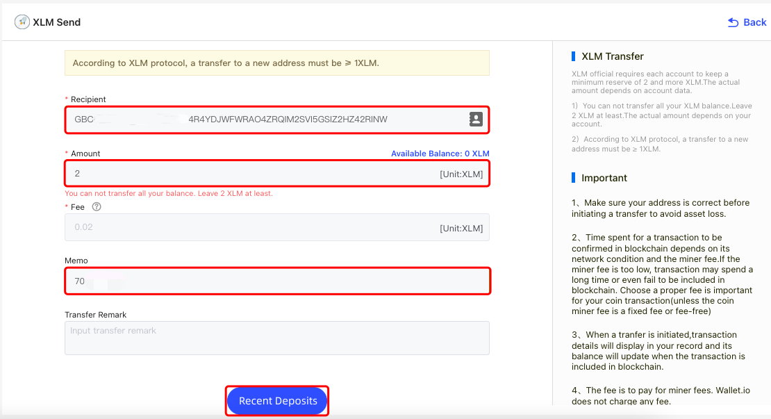 Web sitesinde nasıl yatırma yapılır (örnek: Wallet.io'dan Gate'e XLM yatırma)