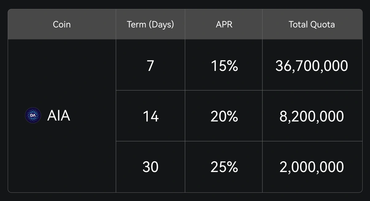Gate Simple EarnはAIA定期プランを正式に開始し、7日間、14日間、30日間のロック期間を提供します。最大25%の年利(APR)をお楽しみいただけます。最低申込数量は10AIAです。お見逃しなく、今すぐお申し込みください。