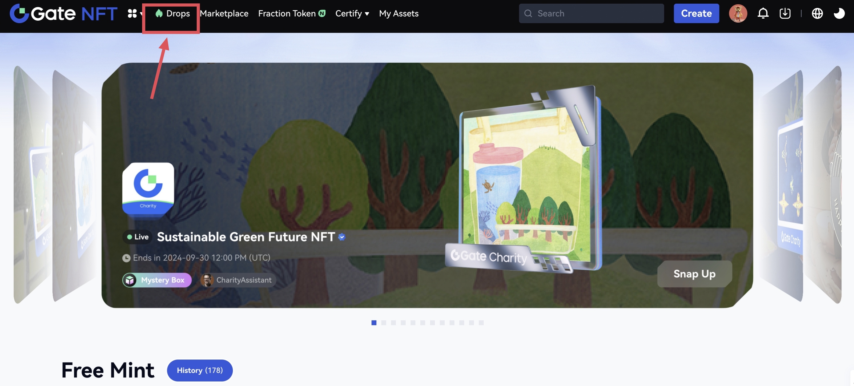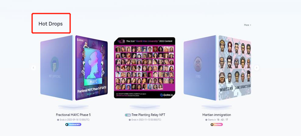 NFT ホームページに進み、「発行/Drops」をクリックして Drops ページに移動するか、ホームページの人気初回発売セクションを直接確認します。