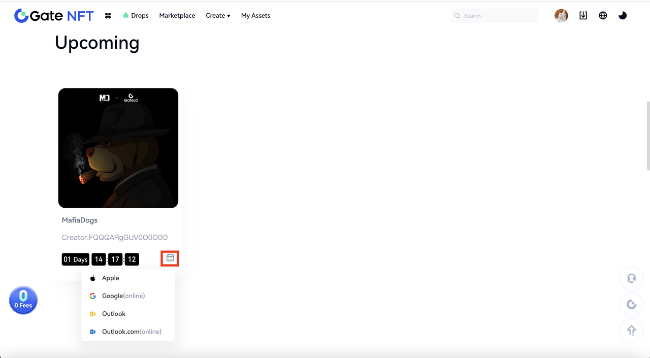 同様に、「近日発売」セクションでは、今後販売予定のミステリーボックス NFT プロジェクトを確認できます。もしイベント開始時にミステリーボックス NFT の販売をタイムリーに購入したい場合は、カレンダー予約ボタンをクリックして、希望するカレンダープラットフォームにイベントスケジュールを追加できます。追加後、イベント開始前にミステリーボックス販売のリマインダー通知を受け取ることができます。