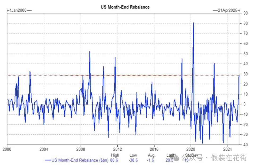 アメリカの年金基金は四半期末に290億ドルのアメリカ株を購入する見込みで、過去3年間の絶対値推定の89%分位、2000年1月以来の91%分位に位置しています。この動きは市場にいくらかの支援を提供する可能性があります: