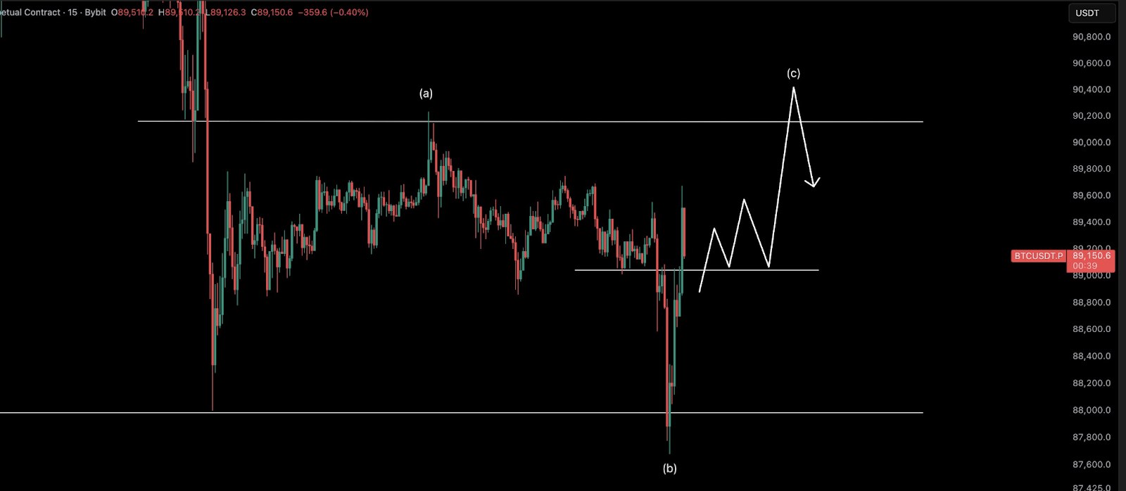 その結果、アナリストはトレンド改善のシグナルに注目を移しています。Crypto Tonyはビットコインが重要な$89,050ラインを再び上抜け、ロングセットアップが発動したと報告しました。現在は$90,200付近がターゲットとなり、ここでトレーダーの強い意思決定が予想されます。このゾーンを突破できなければ、$89,300まで下落し、その後買い手が再度押し上げを試みる展開となるでしょう。