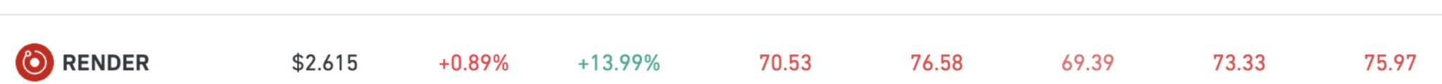 これらの複数の時間枠で一貫して高い値は、RENDERの価格上昇が過剰に拡大している可能性を示し、利益確定や調整のリスクにさらされやすくなっています。