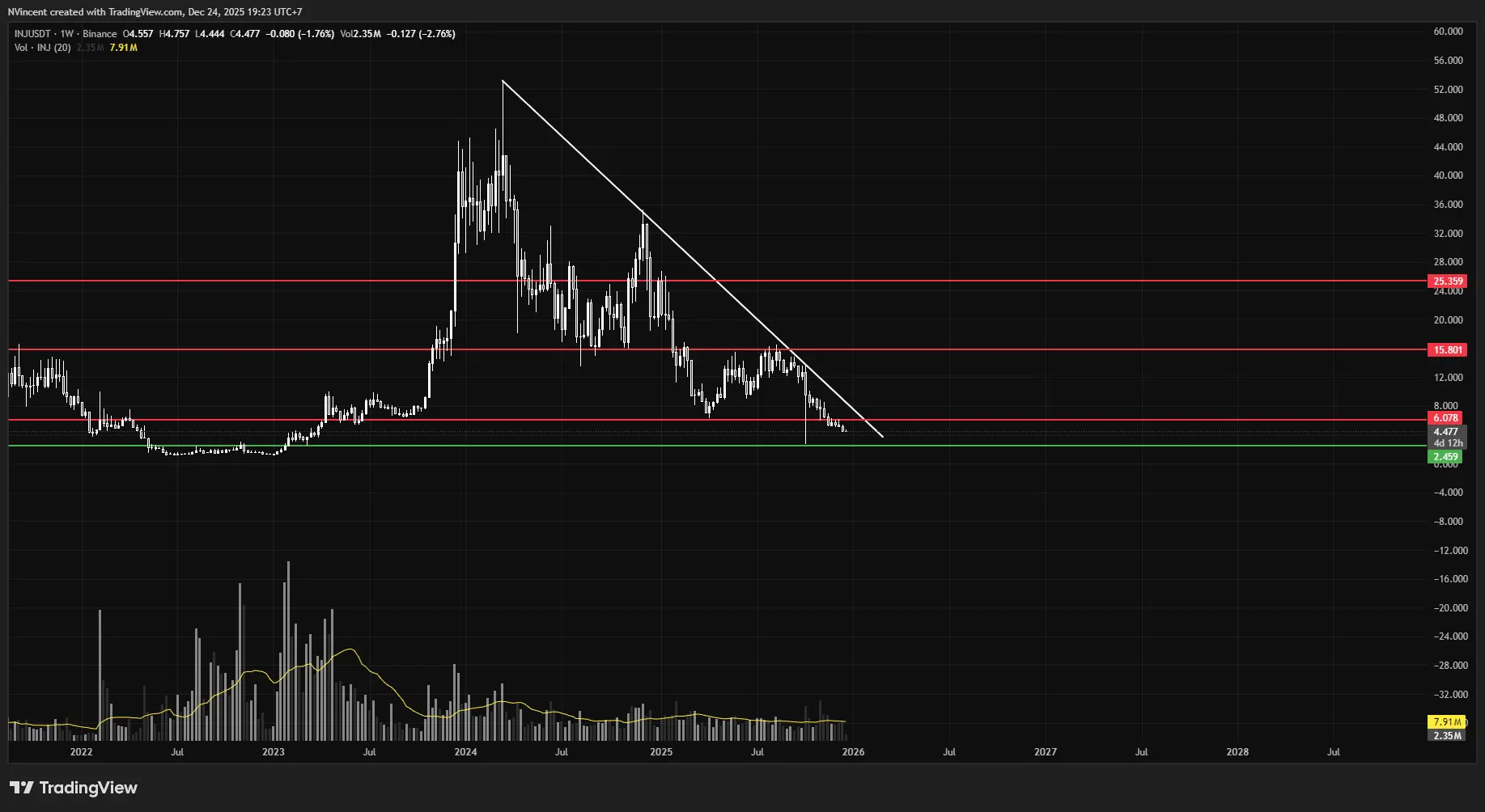 Notably, even tokens once viewed as representatives of “fundamental AI” have not been immune to this trend. Large-cap projects with strong narratives such as $TAO, $FET, and $INJ have shown weak average performance, compressed volatility, and a lack of sustained price expansion. This suggests that much of the long-term growth expectation was priced in early, while core fundamentals—such as real adoption, cash flows, or revenue generation—have not yet been strong enough to trigger a new re-rating cycle.