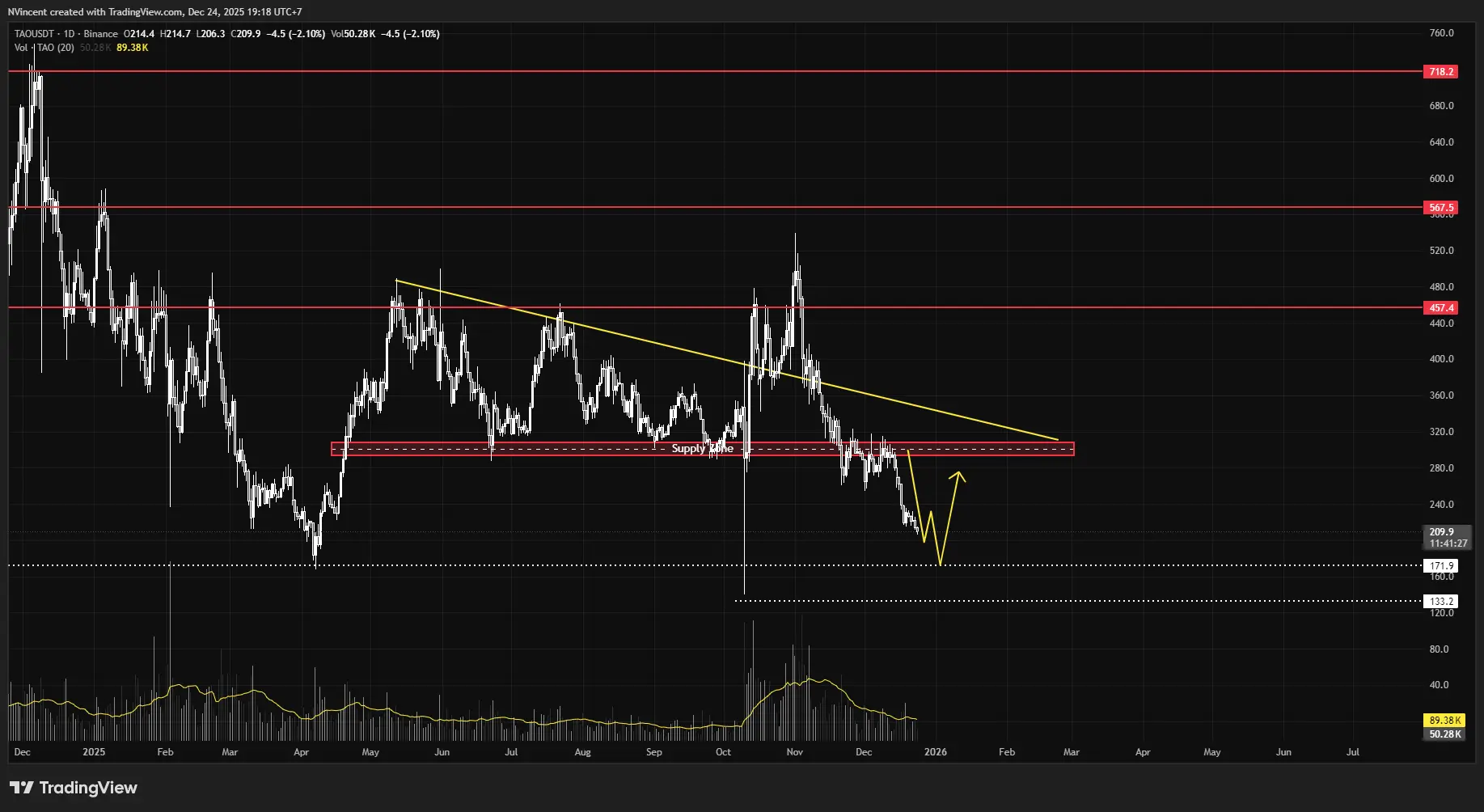 $TAO remains one of the few representatives with a relatively coherent ecosystem and economic logic, but capital flows and signs of re-accumulation should be closely monitored before increasing exposure.