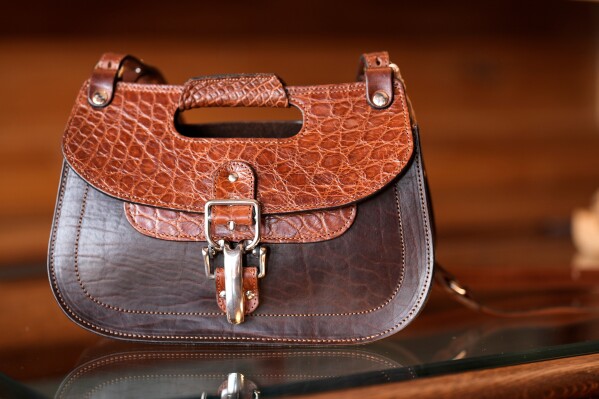 A No. 17 Hunt Bag made from American alligator is displayed at the Col. Littleton leather goods store Friday, March 6, 2026, in Lynnville, Tenn. (AP Photo/George Walker IV)