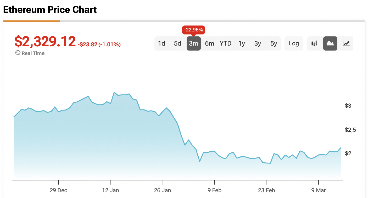 Currently, Ethereum’s price is sitting at $2,329.