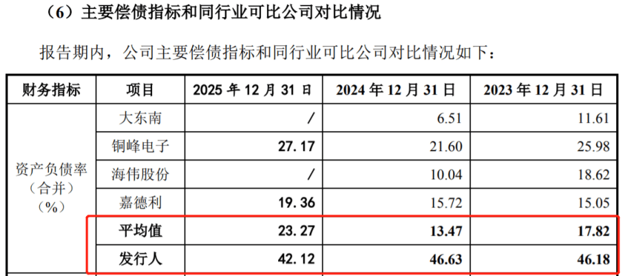 During the reporting period, the company’s asset-liability ratio (consolidated) was 46.18%, 46.63%, and 42.12%, far higher than the industry average of 17.82%, 13.47%, and 23.27%.