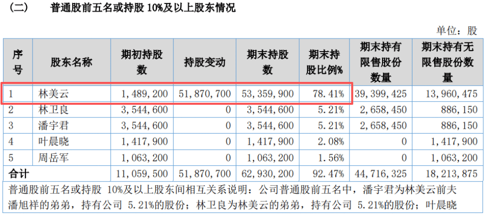 Since then, Lin Meiyun’s shareholding increased to 78.41%, becoming the controlling shareholder and actual controller, while Pan Xuxiang exited the shareholder list and disappeared from the management team.