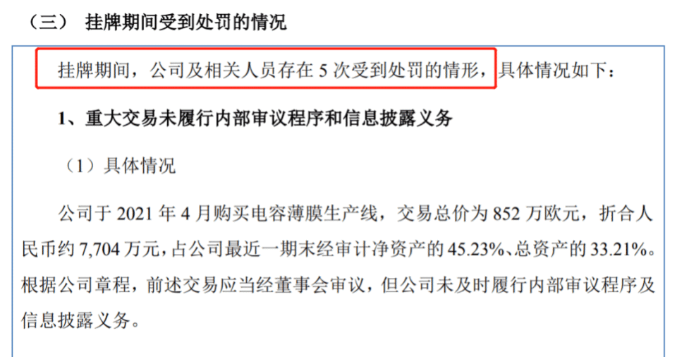 It is noteworthy that Longchen Technology and related personnel have been penalized five times for failing to disclose the 8.52 million euro procurement of production lines, the use of funds by the actual controller Lin Meiyun, and changes in annual auditors without shareholder approval.