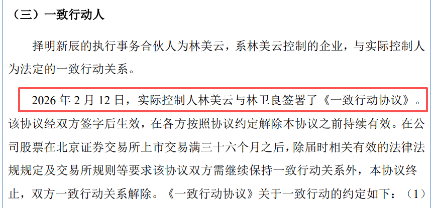 However, the prospectus (registration draft) disclosed that Lin Meiyun and Lin Weiliang signed a “Concerted Action Agreement” on February 12, 2026, and subsequently recognized Lin Weiliang as a concerted party of Lin Meiyun. It appears that the previous statement by Longchen Technology may lack consistency and rigor.
