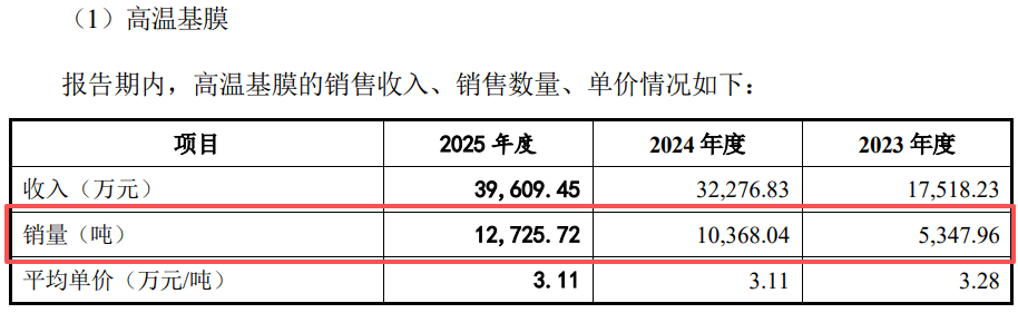 The sales volume of high-temperature base film during the reporting period was 5,347.96 tons, 10.4k tons, and 12.7k tons, respectively. In 2024, the sales volume of high-temperature base film increased by 93.87% year-on-year, driving revenue growth during that period.