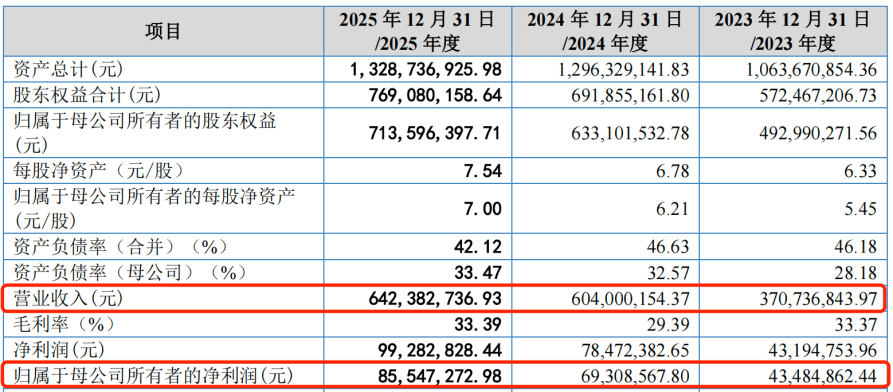 From 2023 to 2025 (hereinafter referred to as the “Reporting Period”), Longchen Technology achieved operating revenues of 371 million yuan, 604 million yuan, and 642 million yuan; net profits attributable to the parent company were 43.48 million yuan, 69.31 million yuan, and 85.55 million yuan, respectively.