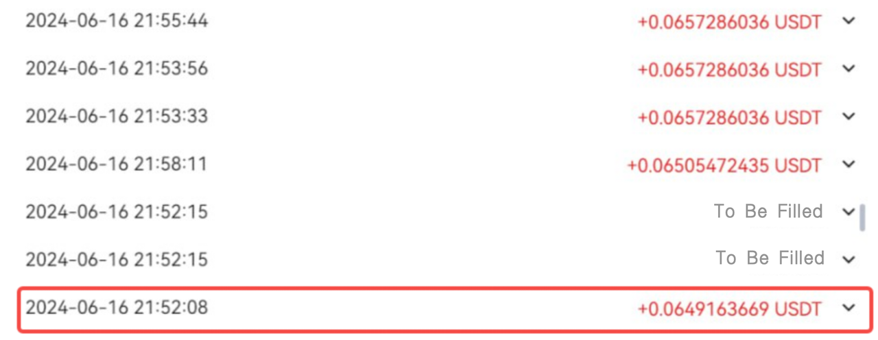 Situação 2: Durante a execução efetiva da negociação na grelha, as ordens não correspondem à diferença de preço de arbitragem definida pela grelha; em vez disso, são executadas aleatoriamente. Como resultado, pode haver casos em que o preço de venda dos tokens seja inferior ao preço de compra. Consequentemente, os lucros da grelha podem ser inferiores ao valor teórico. No entanto, os tokens comprados a um preço mais baixo e ainda não vendidos trarão ganhos não realizados. Assim, a queda temporária dos lucros da rede não afetará o retorno total da rede. Como a página de visão geral das grelhas à vista da Gate apresenta os lucros teóricos da grelha, pode ser diferente dos lucros reais da grelha. Durante este período, os utilizadores não podem retirar os lucros da grelha apresentados.