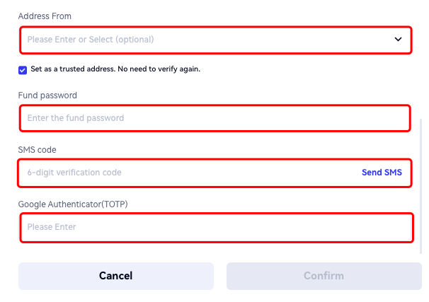Observação: Não é necessária autenticação por SMS/ Google Authenticator/ palavra-passe do fundo para levantamentos futuros depois de assinalar o recurso “Definir como endereço fiável”.