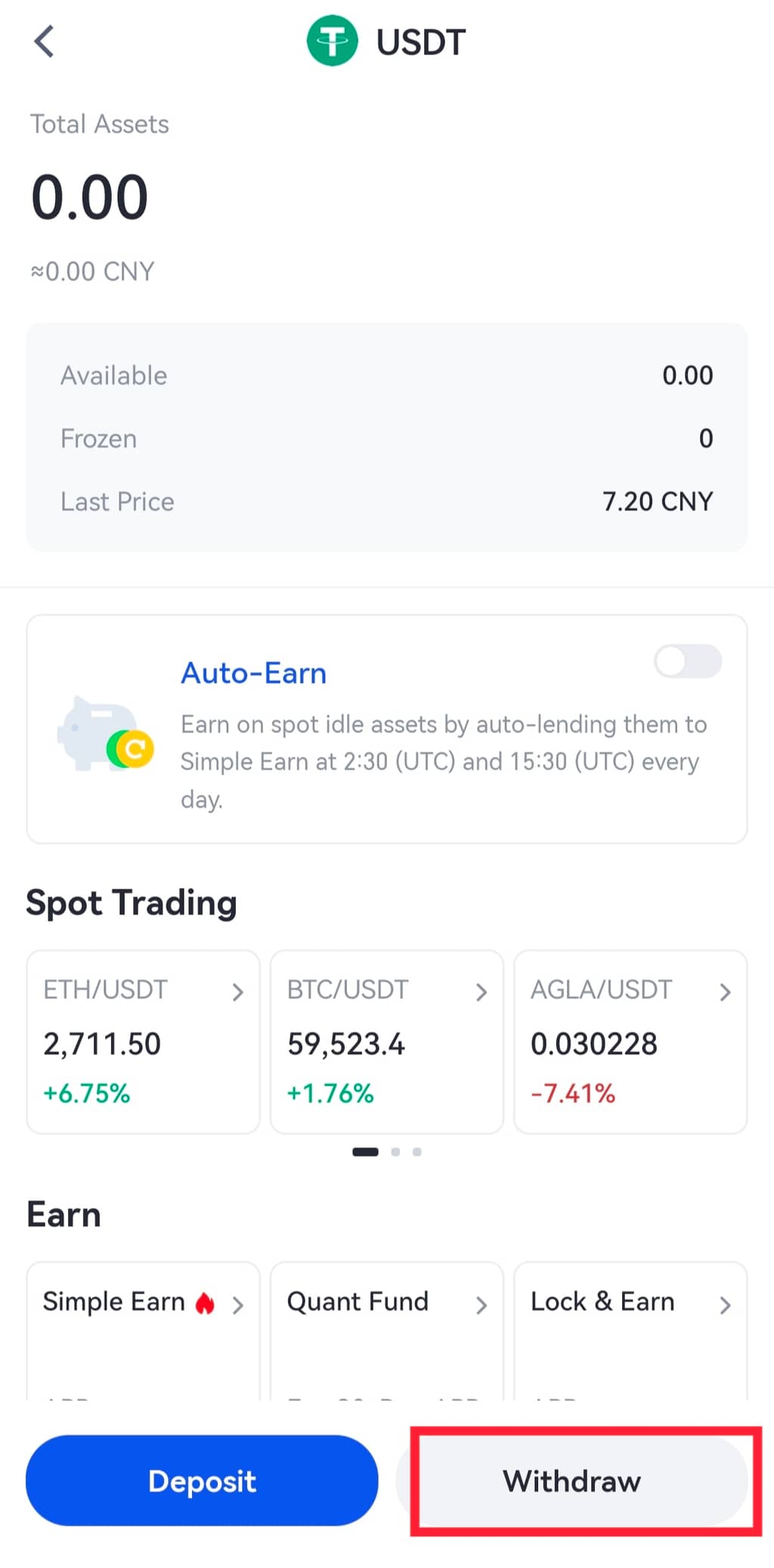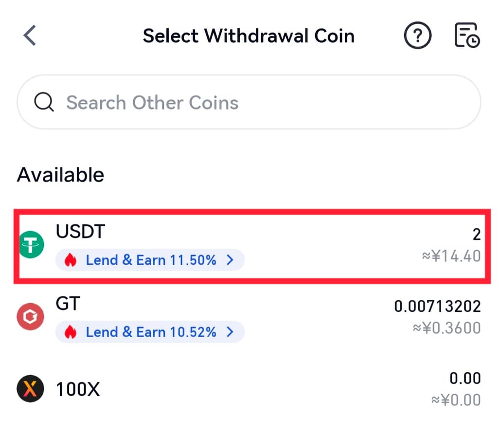 Passo 1: Abra a aplicação Gate e inicie sessão na sua conta. Aceda a “Carteira” - “Levantamento” e selecione uma moeda.