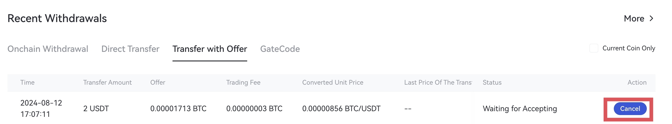 5.После успешного перевода вы можете перейти в раздел “Активы” - “Снятие средств” - “Перевод с предложением”, чтобы проверить детали перевода.