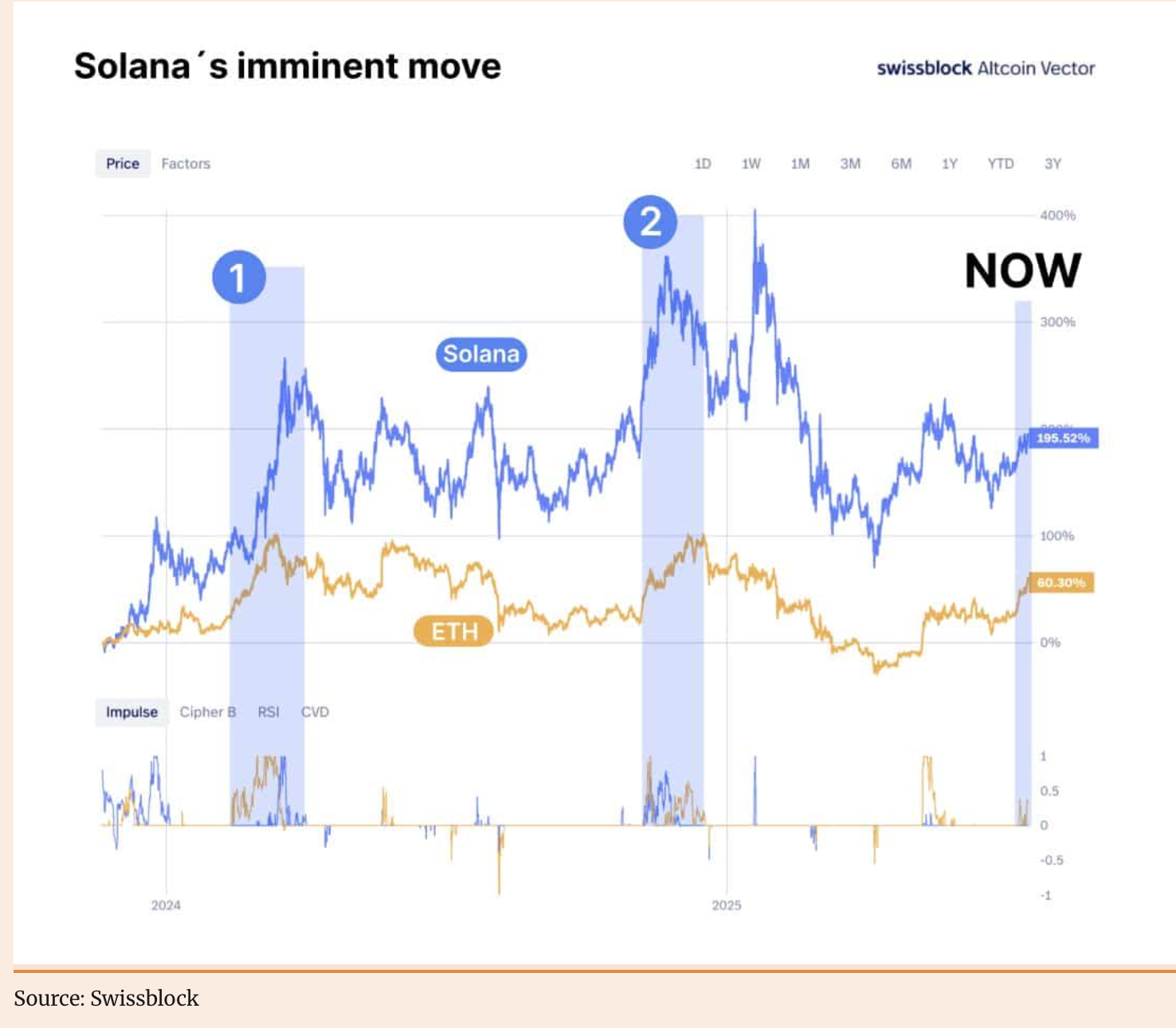 Solana снова запускает памп, ETH рост приносит сильный сигнал На этой неделе Solana (SOL) выросла на 8%, и это может быть лишь началом запуска рынка. Если Ethereum (ETH) сохранит текущую динамику, SOL может ожидать более резкого роста.