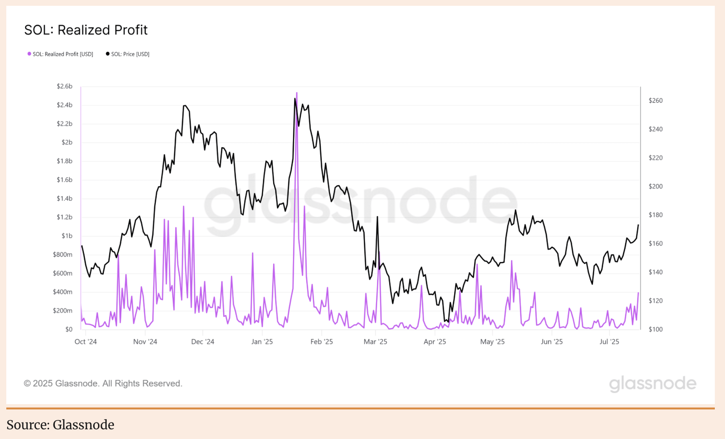 Однако крупные учреждения по-прежнему настроены оптимистично по отношению к SOL. Galaxy Digital на этой неделе потратила 55 миллионов долларов на покупку SOL, что показывает, что крупные игроки все еще видят долгосрочный потенциал. Данные Glassnode также показывают, что среднесуточная сумма прибыли от реализации SOL на этой неделе составила 400 миллионов долларов, что все еще значительно ниже уровня от 1 до 2,4 миллиарда долларов в период локального пика 2024 года.