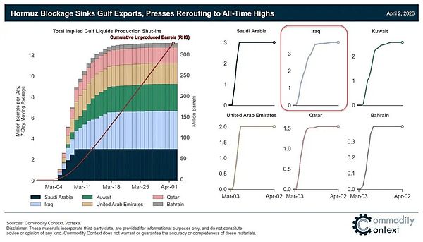 Последний крупный фактор неопределенности исходит из заявления Ирака о снятии ограничений. В видеокомментарии, опубликованном военным официальным представителем Ирана в агентстве IRNA (Islamic Republic News Agency), говорится: «братская страна Ирак» освобождена от любых ограничений, которые Иран применяет к Ормузскому проливу; соответствующие ограничения относятся лишь к «враждебным государствам». Если это освобождение будет реализовано, теоретически оно может высвободить до 3 миллионов баррелей иракской нефти в день в объемах экспортной перевозки.