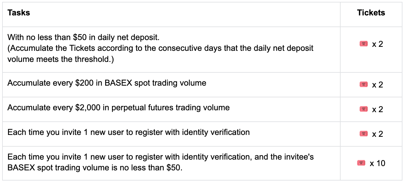 4.The rewards will be in BASEX, with a total prize pool of 2,600,000 BASEX. Participants must complete any BASEX spot trading during the event to be eligible to split the Ticket Prizes Pool. Rewards will be distributed in project tokens within 14 working days after the campaign ends (“Wallet”–“Bill”.) The rewards distribution announcement will be released at Gate News.