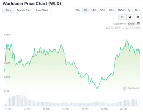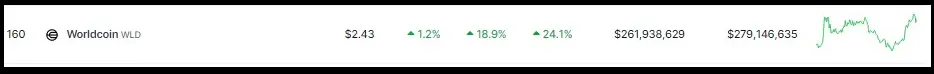 As of today, the trading price of Worldcoin (WLD) has reached $2.43, indicating that the cryptocurrency has made a strong recovery. In comparison to the previous 24 hours, this is a significant gain of 19%, with an impressive 24% rally in the last week, data from crypto price aggregator Coingecko shows.