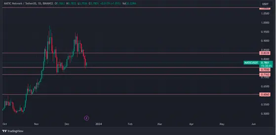 As of writing, MATIC bulls are trying to reverse the current downward trend that the token is on. However, they might need to settle for a lower, more stable price point around $0.7550. This will provide investors and traders with a stable jump-off point for higher gains before the year’s end