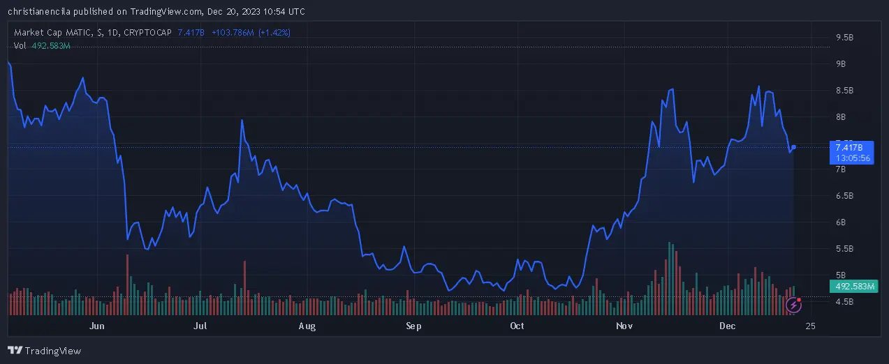 MATIC market cap currently at $7.424 billion. Chart: TradingView.com