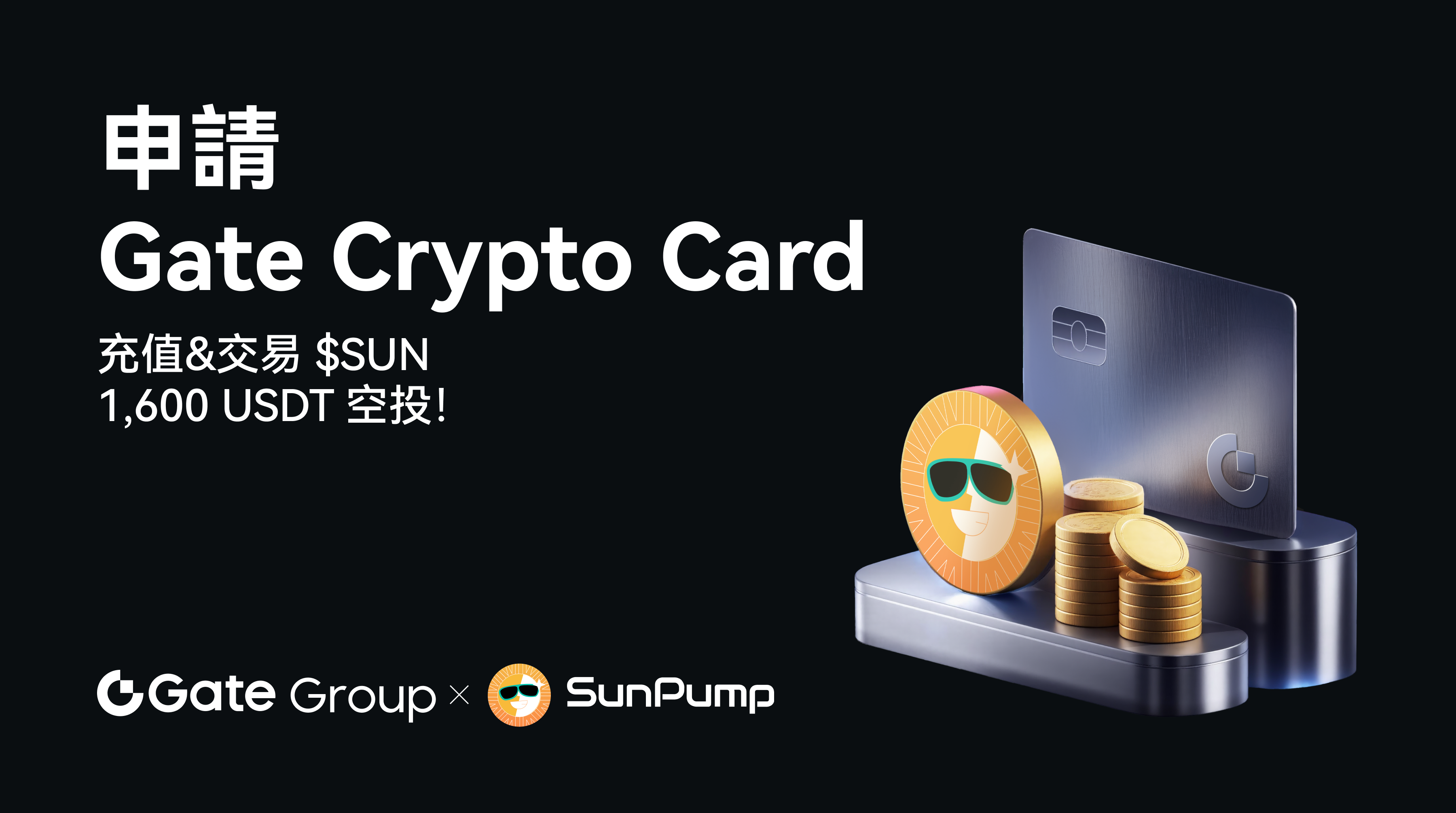 我們很高興推出與SunPump的合作活動!通過申請Gate Crypto Card、為卡片充值$SUN或通過Gate Connect交易$SUN來贏取多重獎勵!總獎池$1,600,先到先得!交易越多,賺得越多!