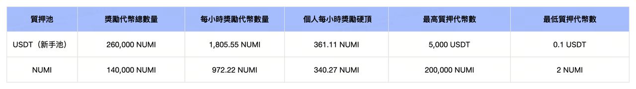 挖礦總量:400,000 NUMI