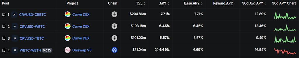 這意味著 (包裝) BTC 代幣持有者現在可以在提供流動性時賺取收益。歷史上,這種供應收益的七日移動平均率介於 4% 到 40% 之間。