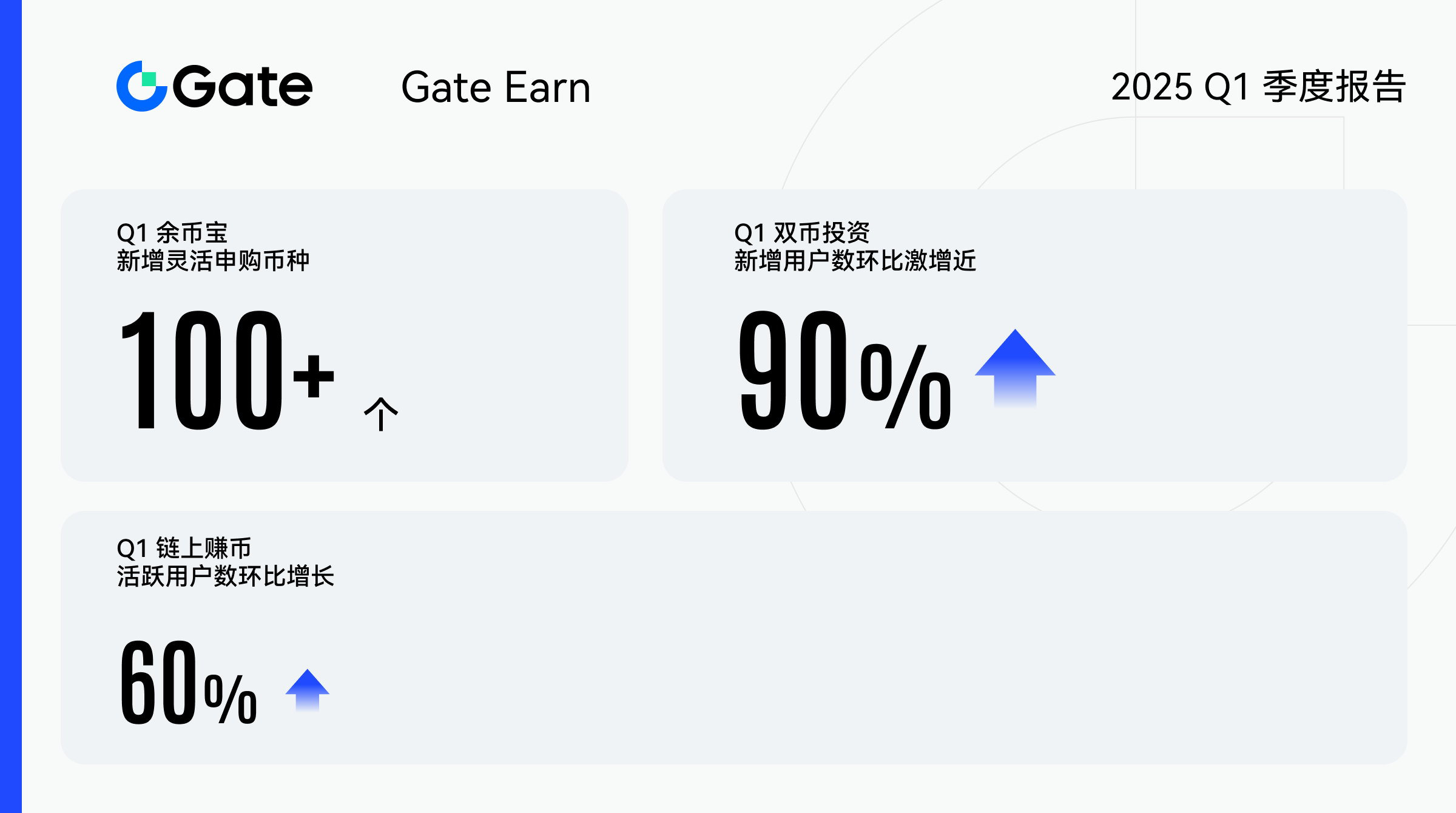 2025 年第一季度,Gate Earn 产品不断优化,为用户提供更优质的投资体验。余币宝资金量稳步增长,新增超过 100 个币种的灵活申购选项。此外,余币宝利率拟合机制正式上线,资金借出率最高可达 100%。新推出的定期产品额外奖励活动吸引了大量用户参与。BTC 60 天定期理财收益进一步提升,并加码百万 SOLV 额外奖励池,上线后市场反应热烈。