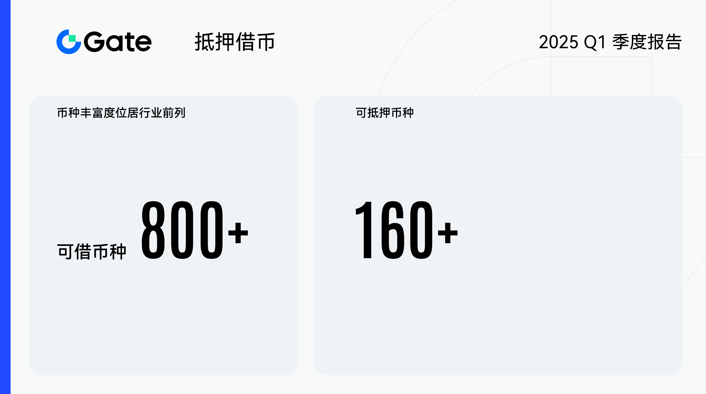 2025 年第一季度,Gate 抵押借币业务保持稳健增长,核心数据与产品创新均实现显著突破。业务规模显著扩张,平台持续扩展币种选择,可借币种新增 200 余种,总数突破 800 种,行业领先;可抵押币种新增 60 余种,总数超过 160 种,币种丰富度位居行业前列。用户规模环比增长 50%;累计借贷金额保持稳健上升态势,市场占有率同步提升。
