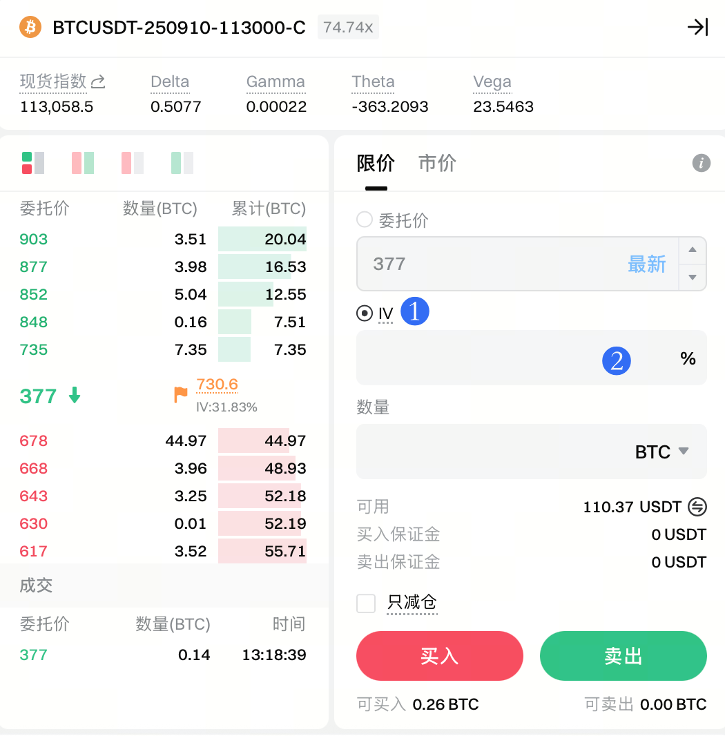 IV订单允许你根据“隐含波动率(IV)”来挂单,而不是直接输入价格。系统会根据你设定的IV,自动换算成价格,并挂在订单簿上。