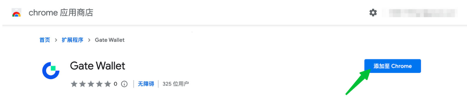 如您未安装Gate Web3钱包插件,请点击链接,进入谷歌商店页面进行钱包插件安装。如下图所示,点击页面右边的“添加至Chrome”按钮。