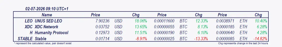 *本次更新涵盖截至上午9:00 CET的市场活动。涨幅最大者包括24小时表现,但主要关注自午夜以来变动最大的资产。2100NEWS指数显示从00:00到9:00 CET的变化。**2100NEWS总指数(NWST1100)*及比特币和以太坊部分始终反映完整的24小时变化,无论报告时间如何。请注意,自发布以来,市场状况可能已发生变化。比特币和以太坊的表现分类(显著、轻微或类似)基于其历史波动性的统计分析。补充说明详细列出突出这些特定加密货币和指数的标准。