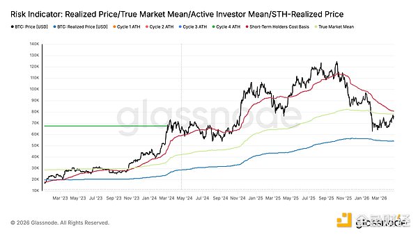 glassnode 发布数据图称,比特币收复 7.8 万美元关口,现货需求与 ETF 资金流入双双回归。空头仓位伴随负资金费率累积,形成轧空潜力。然而,过高的已实现利润与低迷的波动率释放谨慎信号,且 8 万美元附近的上行空间面临阻力。