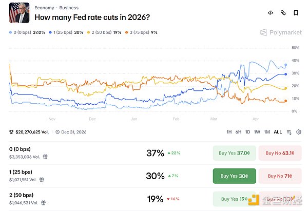 此外,据 Polymarket 最新数据显示,市场押注今年美联储降息 1 次的概率已升至 30%。