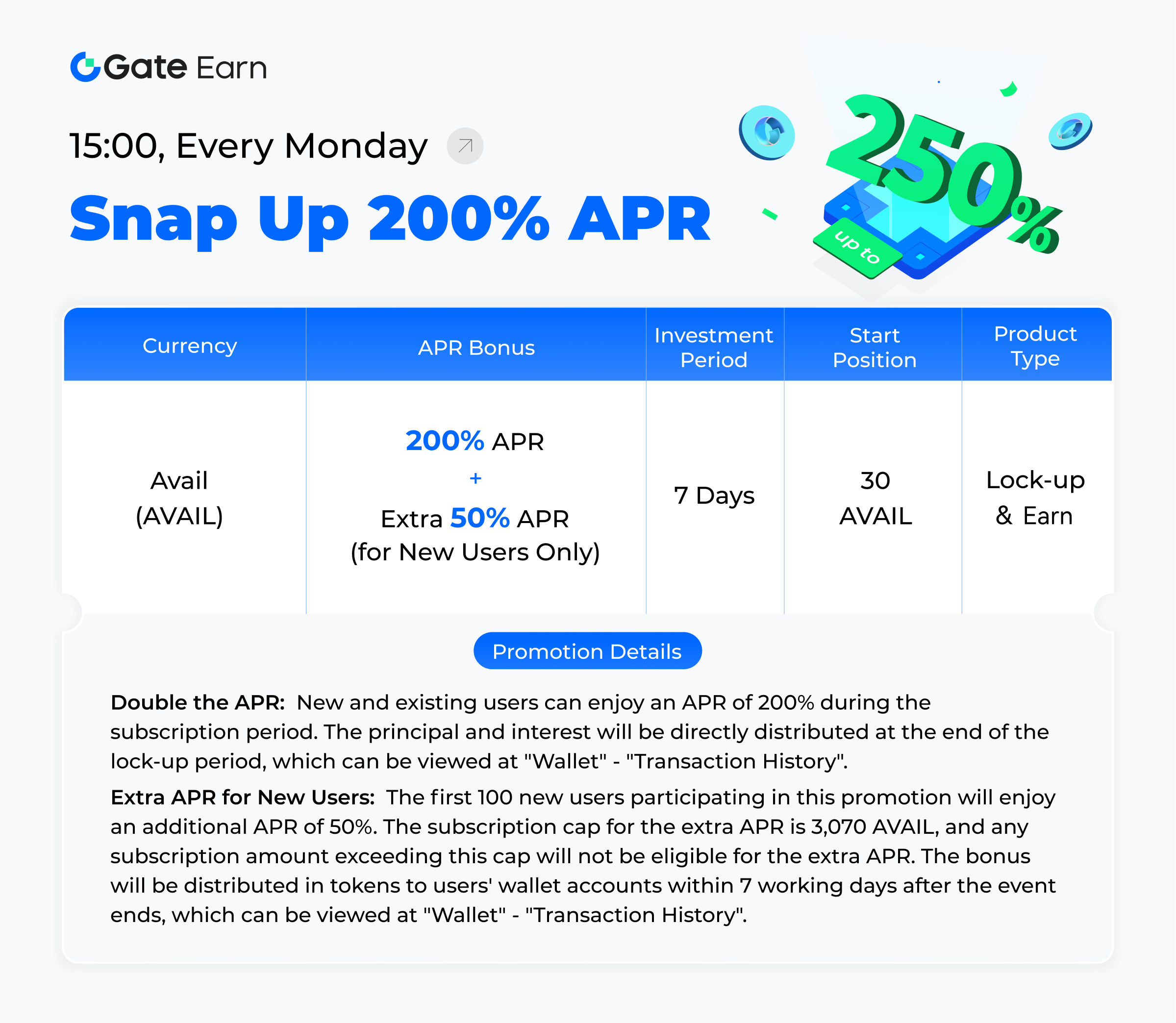 يسرد موقع Gate Hodl & Earn منتجًا عالي الربحية ومنخفض العتبة وعالي الأمان كل يوم اثنين، مما يسمح لجميع المستخدمين بالاستمتاع بأرباح مضاعفة ونسبة فائدة سنوية مرتفعة! بالإضافة إلى ذلك، إذا كنت مستخدمًا مسجلاً حديثًا وتستخدم هذا المنتج، فيمكنك الحصول على نسبة فائدة سنوية إضافية.
