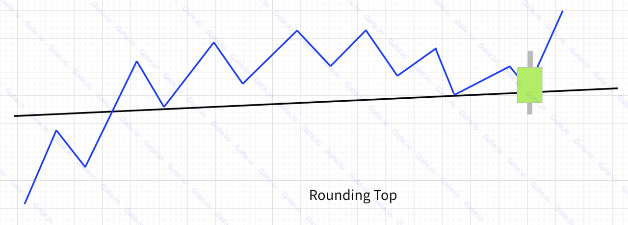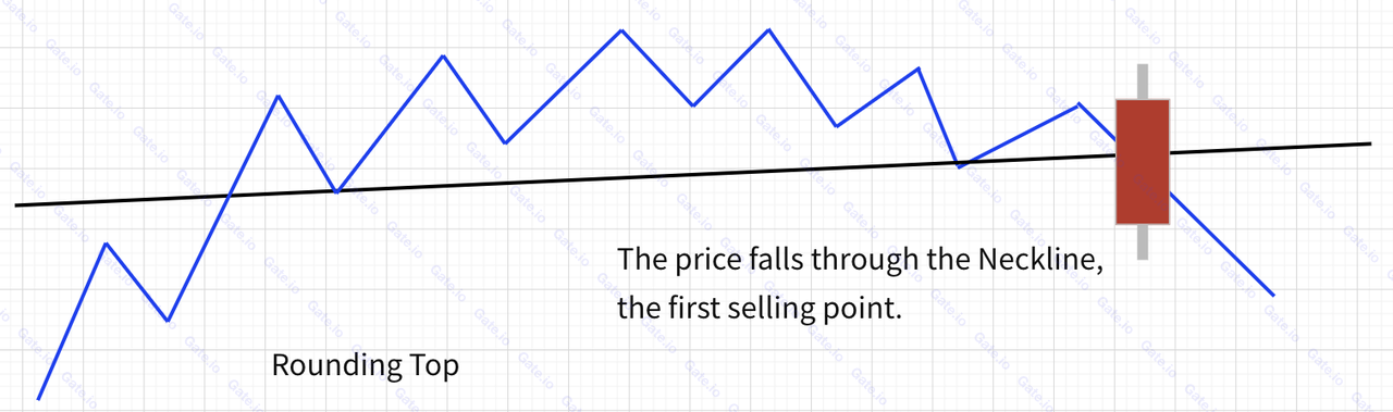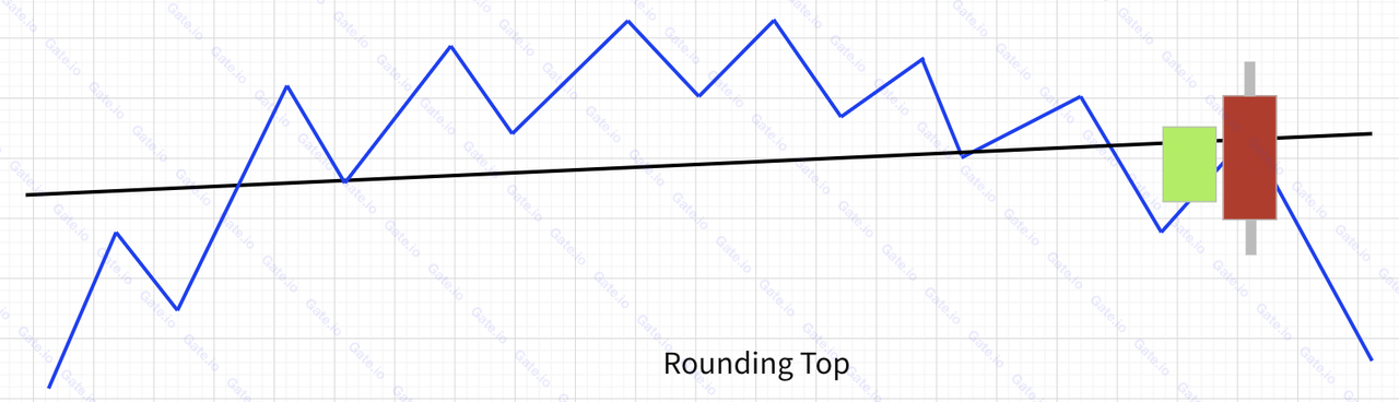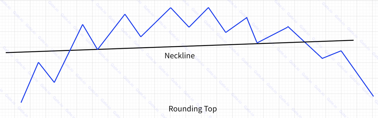 ①. يواجه استخدام "القمة المستديرة" تحديًا مشابهًا لـ "القاع الدائري". وعلى وجه التحديد، في بعض الحالات، لا يمكن تحديد موضع خط العنق بوضوح. في مثل هذه الحالات، يجب على المتداولين الرجوع إلى مؤشرات فنية إضافية للتحقق من صحة ظروف السوق.